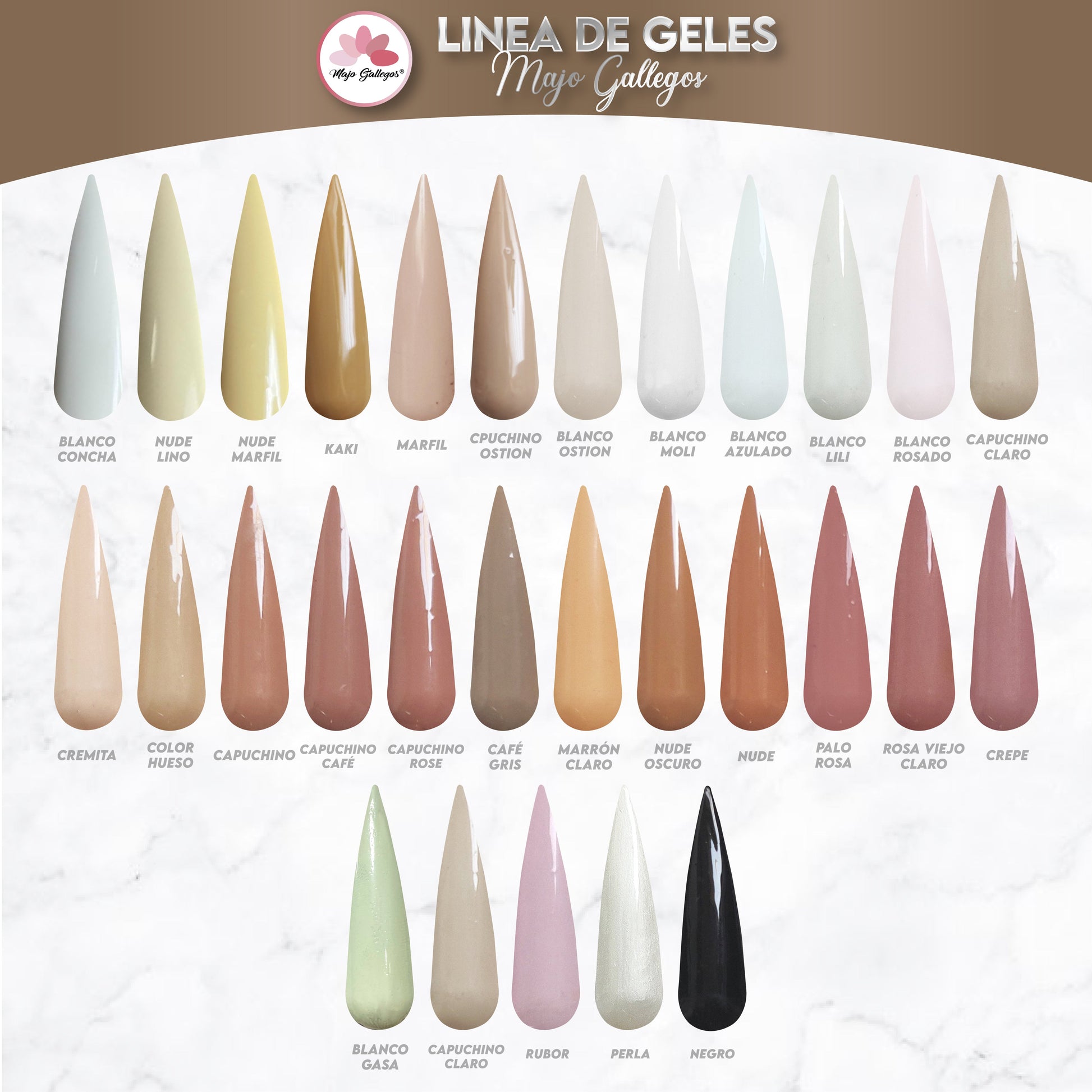 GAMA CAPUCCINOS Y BASICOS de MAJO GALLEGOS nos ofrece el look perfecto para cualquier ocasión. Su extrema durabilidad le otorga una textura suave y natural, para que luzcas elegante y sofisticado sin correr el riesgo de desgastarlo. ¡Es la perfecta combinación de calidad y estilo!